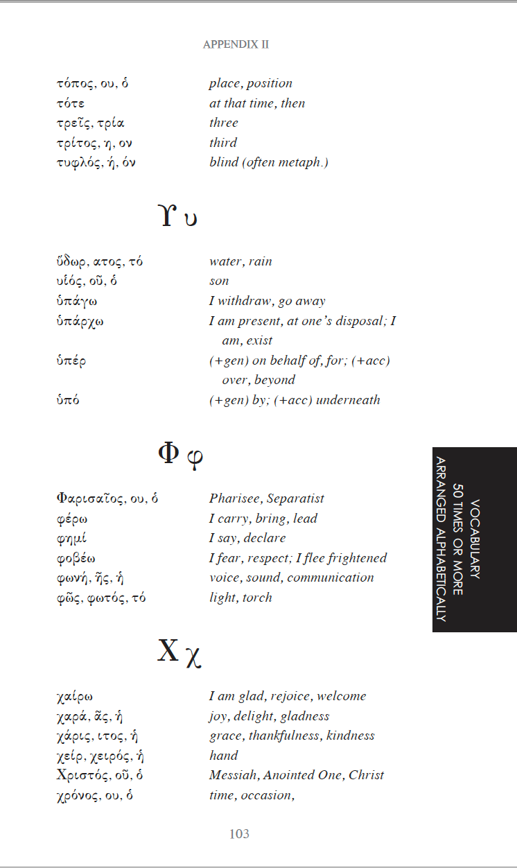 Any student using this book will be able to exercise his or her beginning Greek learning to read directly from the Greek New Testament and understand how grammatical and syntactical classifications affect meaning and translation in context.