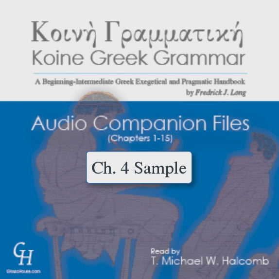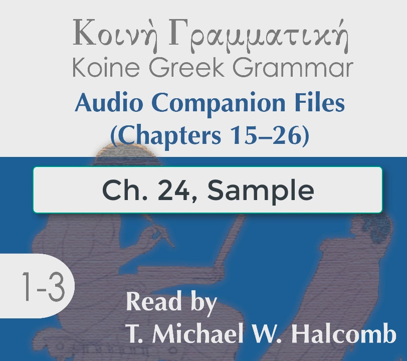 Audio companion files, read by T. Michael W. Halcomb, for chapters 1-26 of Fredrick J. Long's Koine Greek Grammar. (Formerly, chapters 1-15 consisted of 1 download and chapters 16-26 consisted of 1 download. Here, the two are combined into 1 download.)